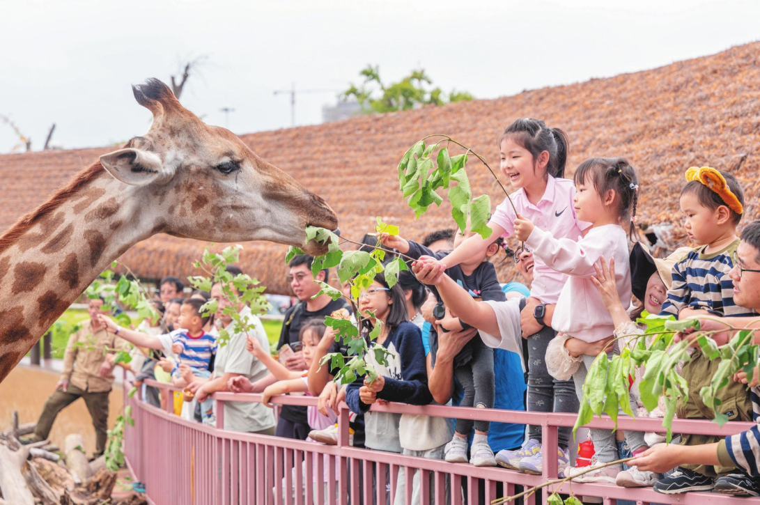 在泉城歐樂堡動物王國,游客近距離與動物互動