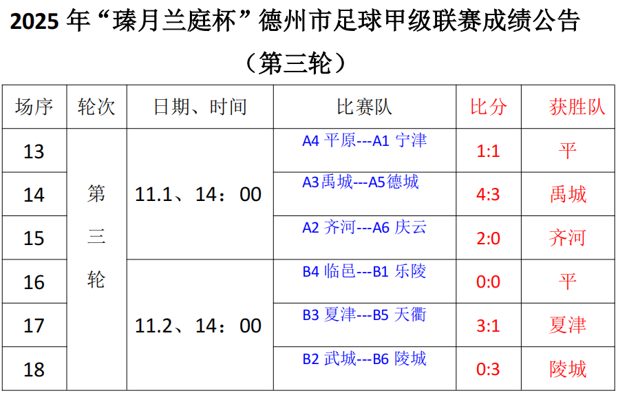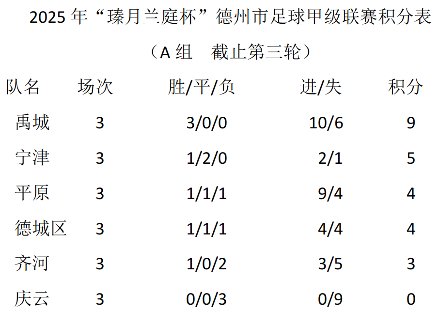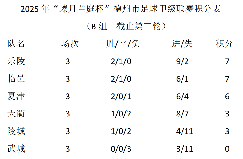 其他比賽中,夏津3:1擊敗天衢,武城0:3不敵陵城。夏津的勝利讓他們在B組的排名進一步提升,而武城則繼續(xù)深陷連敗泥潭。