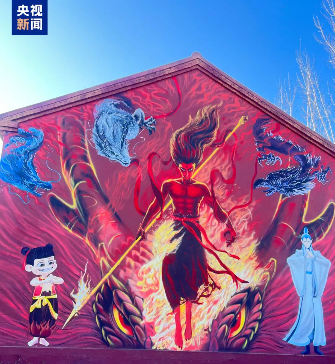 上千人前來打卡拍照沈靖宇介紹,2019年,他因一句“我命由我不由天”被電影《哪吒》圈粉?!白鳛槟贻p人,我希望自己能像哪吒一樣,通過努力改變現(xiàn)狀?!庇谑?,2025年春節(jié)前夕,電影《哪吒2》上映前,沈靖宇參照電影海報,用墻繪的方式為“偶像”助力,也為家鄉(xiāng)增添節(jié)日氛圍。