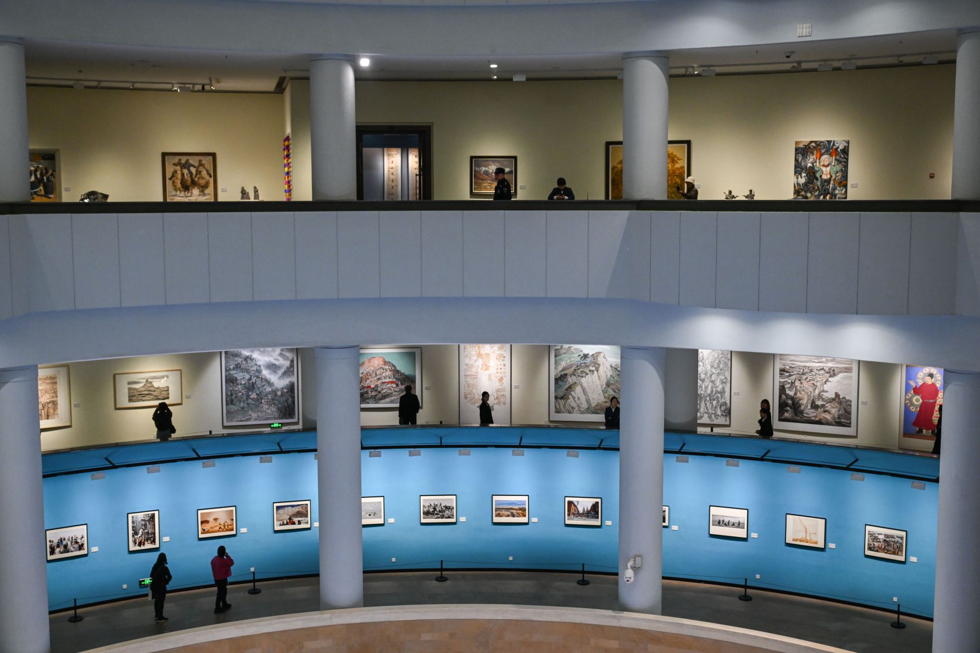 10月19日,參觀者在陜西省美術(shù)博物館欣賞藝術(shù)作品。