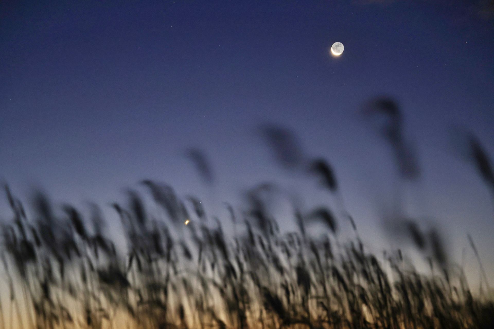 10月19日在黑龍江省同江市拍攝的啟明星伴月。
