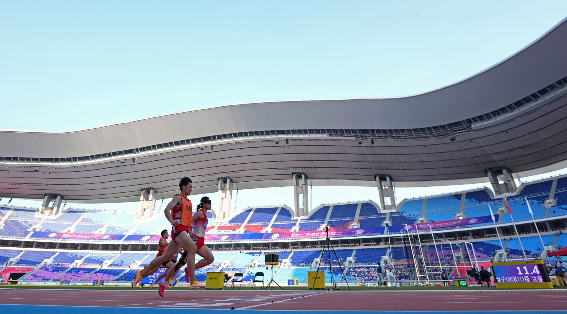 當(dāng)日,全國(guó)第十二屆殘疾人運(yùn)動(dòng)會(huì)暨第九屆特殊奧林匹克運(yùn)動(dòng)會(huì)田徑女子100米T11級(jí)決賽在廣州舉行。