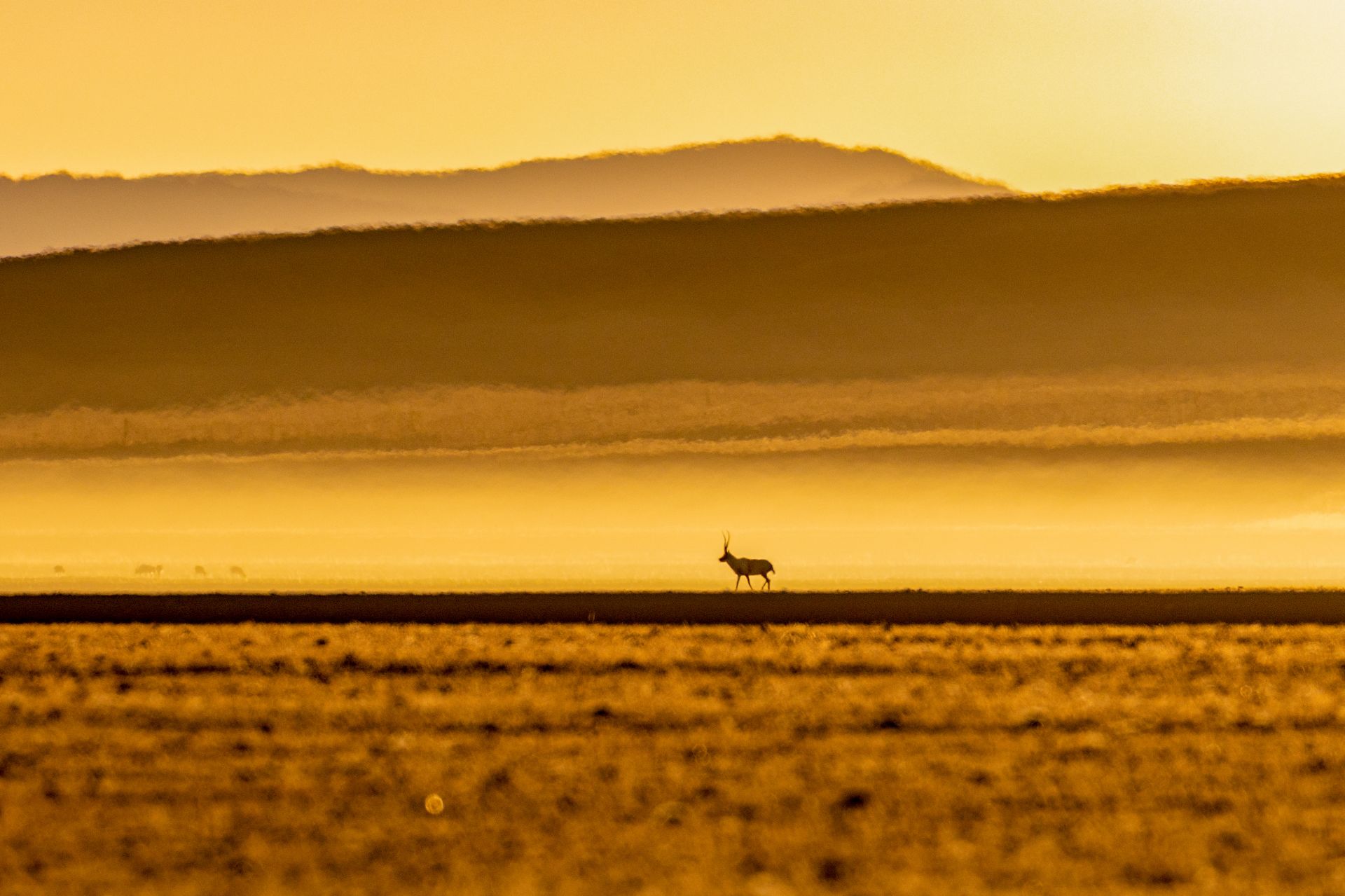 羌塘國家級自然保護(hù)區(qū)的一頭雄性藏羚羊沐浴在晨光中(12月4日攝)。