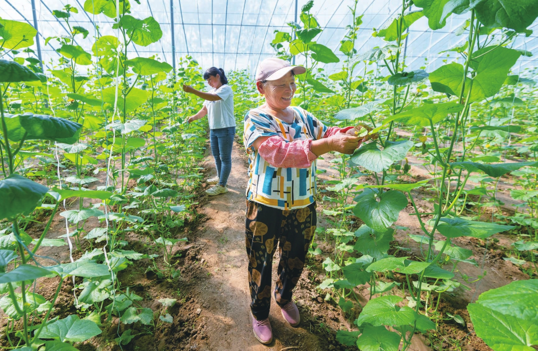 蔬菜大棚內(nèi),村民們正忙著采摘(資料圖)